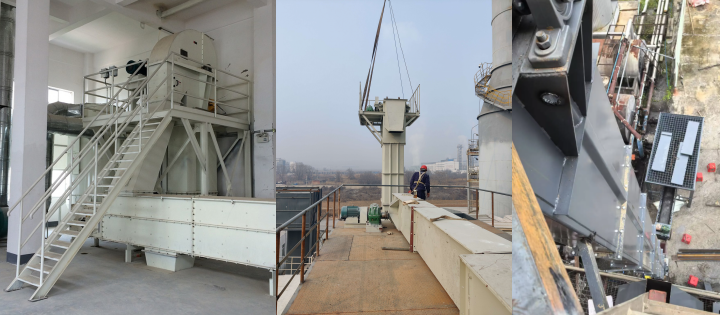 陜西客戶的復(fù)合肥廠原有生產(chǎn)線采用傳統(tǒng)螺旋輸送機,存在提升高度不足、潮濕物料易殘留腐蝕、多設(shè)備銜接不暢等問題,為適配新生產(chǎn)線,定制了3臺板鏈?zhǔn)蕉肥教嵘龣C,解決40米高落差輸送及復(fù)雜工況適配需求。針對復(fù)合肥含酸堿成分、部分物料含水量高的特性,設(shè)備主體選用304不銹鋼材質(zhì),料斗采用防粘附PP材質(zhì),有效杜絕銹蝕與物料結(jié)塊堵塞。設(shè)備同步適配混合機、造粒機,實現(xiàn)全自動化流程。