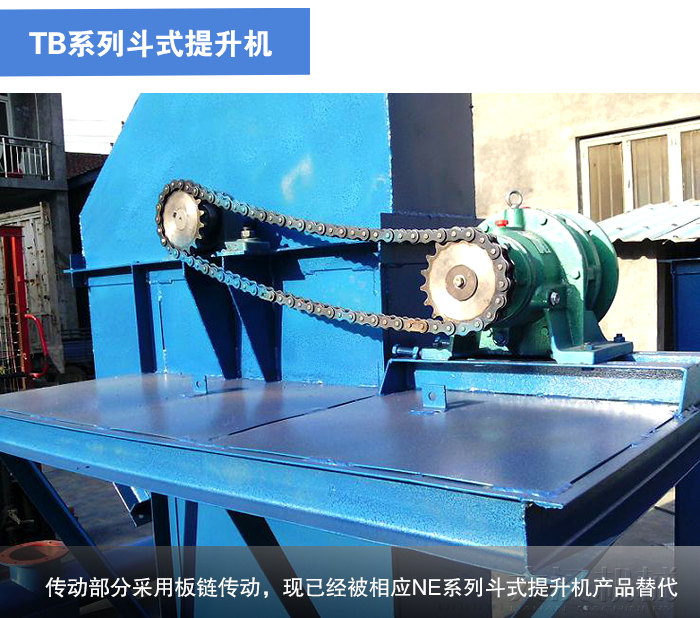 TB系列斗式提升機是一種較老型號的斗式提升機,其傳動部分采用板鏈傳動,現(xiàn)已經被相應NE系列斗式提升機產品替代 。