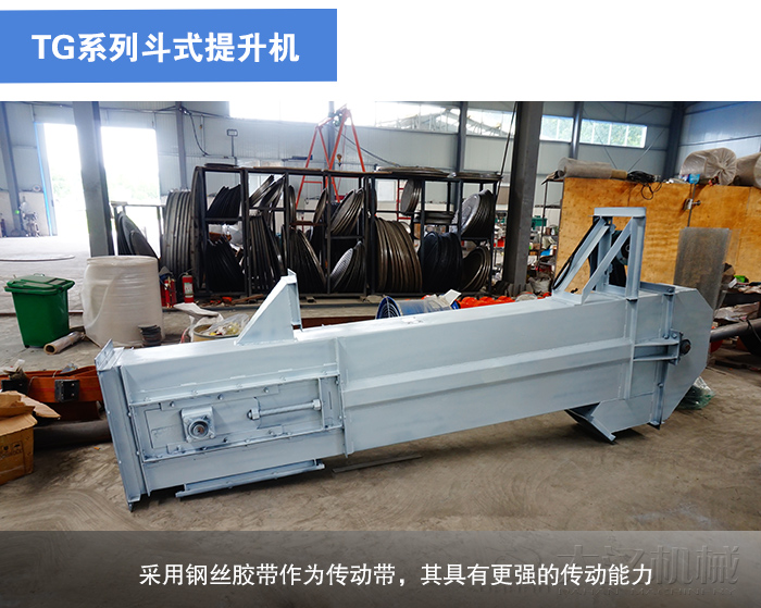 TG系列斗式提升機是一種加強型膠帶斗式提升機,其區(qū)別于TD系列斗式提升機,TG系列斗式提升機采用鋼絲膠帶作為傳動帶,其具有更強的傳動能力。該系列斗式提升機多被應用于糧食輸送上,又被長稱呼為糧食專用斗式提升機。