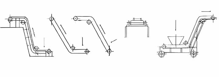 擋邊帶式輸送機外型結構及布置形式圖:
