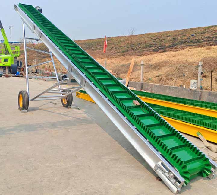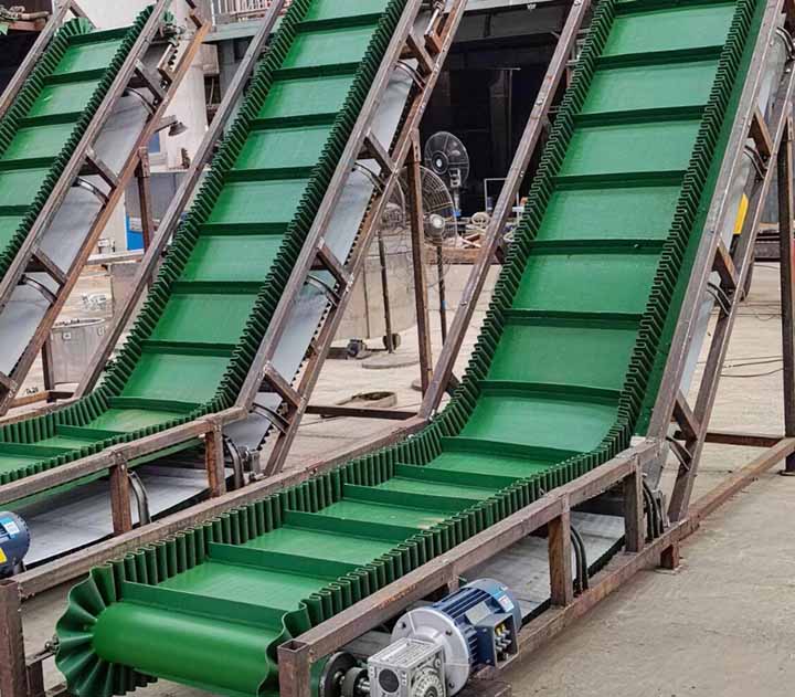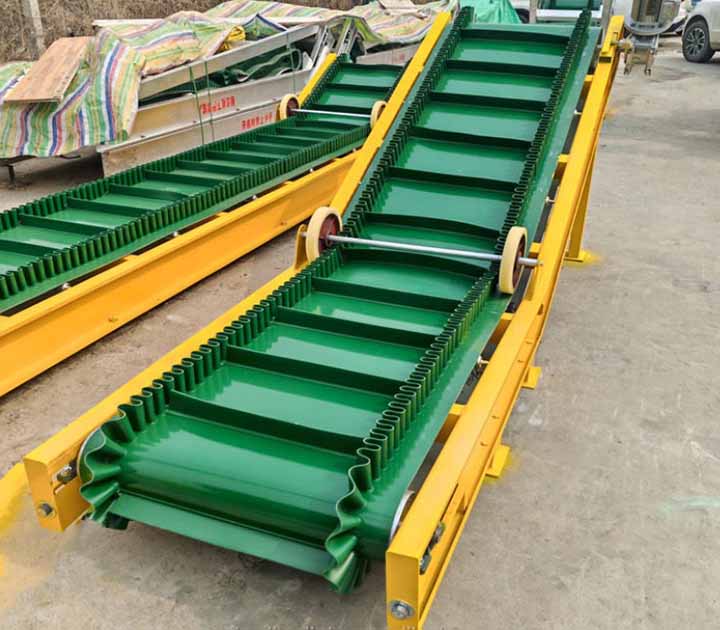 1.擋邊帶式輸送機為一般用途的散狀物料連續輸送設備,采用的是具有波狀擋邊和橫隔板的輸送帶。因此,特別適用于大傾角輸送。