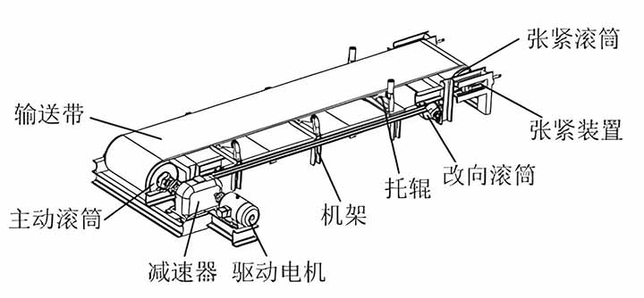 TD 系列帶式輸送機(jī)由驅(qū)動(dòng)、滾動(dòng)、托輥、清掃、卸料、制動(dòng)等部分組成,各部件相互配合完成物料的輸送過程。